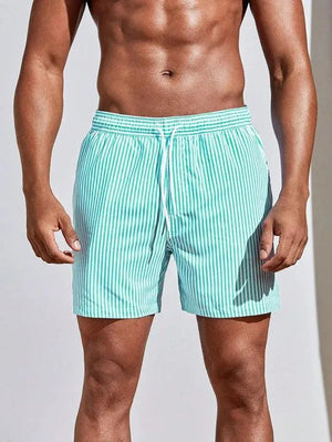 Men's Swim Shorts - Pinstripe Pattern and Drawstring Waist