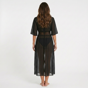 This garment is designed with a flowing, easy-to-wear drape that accommodates various body types. Available in sizes S, M, L, XL, 2XL, and 3XL. We recommend referring to the size chart to ensure the most accurate fit for your height and measurements.