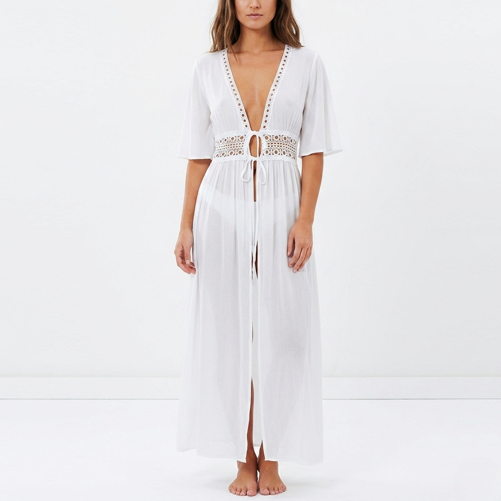 Step into a world of effortless grace with the Women's Cover-Up Tie Waist Maxi Dress, a sweeping silhouette that brings a touch of high-end flair to your holiday collection. This piece is a premier choice for the discerning traveller, offering an elegant maxi length that provides sophisticated coverage while maintaining a lightweight feel. Designed with a distinct breathable weave, it ensures you remain the most polished individual from a sun-drenched terrace to a relaxed evening by the shore.