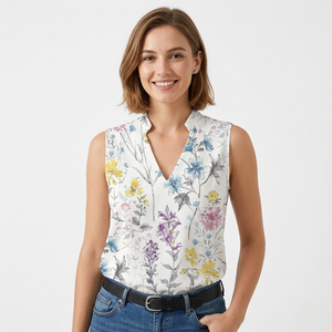 Experience a refreshing blend of airy comfort and effortless charm with the Women's Sleeveless Wrap V-Neck Top, a quintessential staple for those sun-soaked afternoons. This Top is engineered with a focus on breathability, utilizing a smooth texture weave that ensures you remain cool during the height of the season. Perfect for transitioning from a casual seaside lunch to an evening garden gathering, this clothing piece offers a relaxed silhouette that moves with you, providing both a flattering drape and the freedom of movement needed for all-day wear.